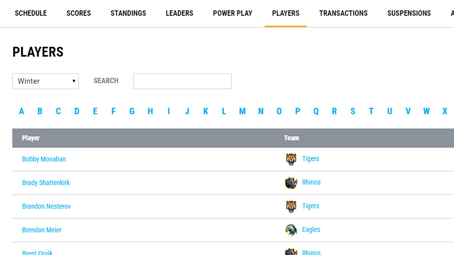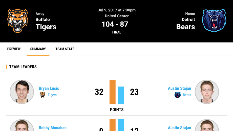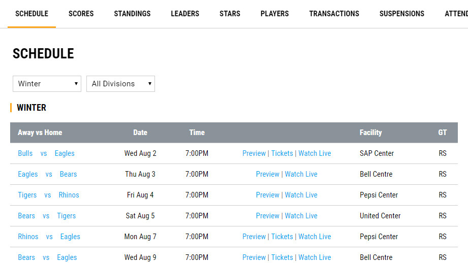 Display games with all the important details. Players can filter games for their team.