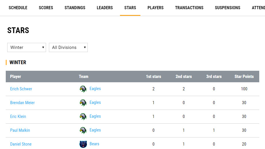 See what players have the most star points.