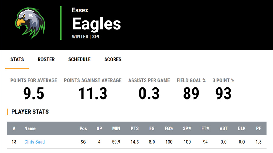Detailed team and player stats.