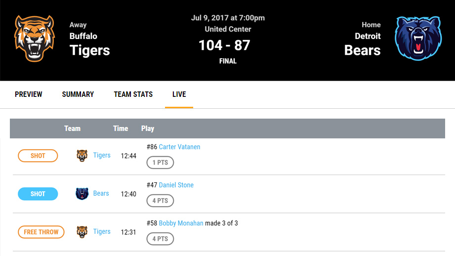 Fans get up to the second game updates. A live score clock helps fans follow the game.